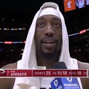 虎扑04月13日讯 今日NBA常规赛,热火143-117击败老鹰。热火球员阿德巴约谈及自己达成赛季场均20+10的表现:...