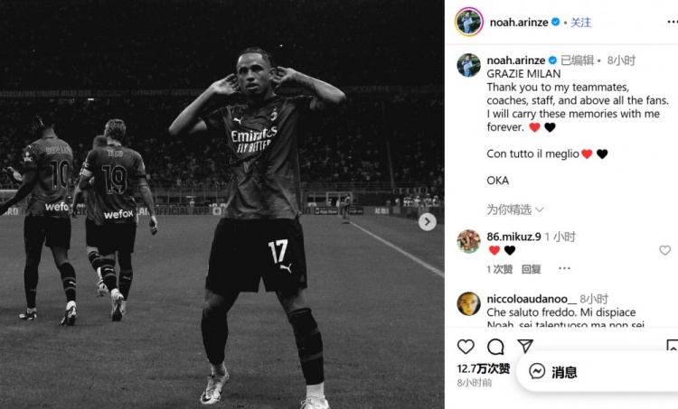 09月 07 2025 0 奥卡福告别米兰:谢谢米兰,感谢队友、教练、工作人员和球迷们 xiaoqiao 2025-09-07 德甲 113 8月22日讯 在永久转会加盟利兹联后,奥卡福发文告别了米兰。奥卡福写道:“谢谢米兰!感谢我的队友、教练、工作人员,尤其感谢球迷们。我将永远珍藏这些回忆。❤️🖤”“祝一切顺利 ❤️🖤——奥卡福。”